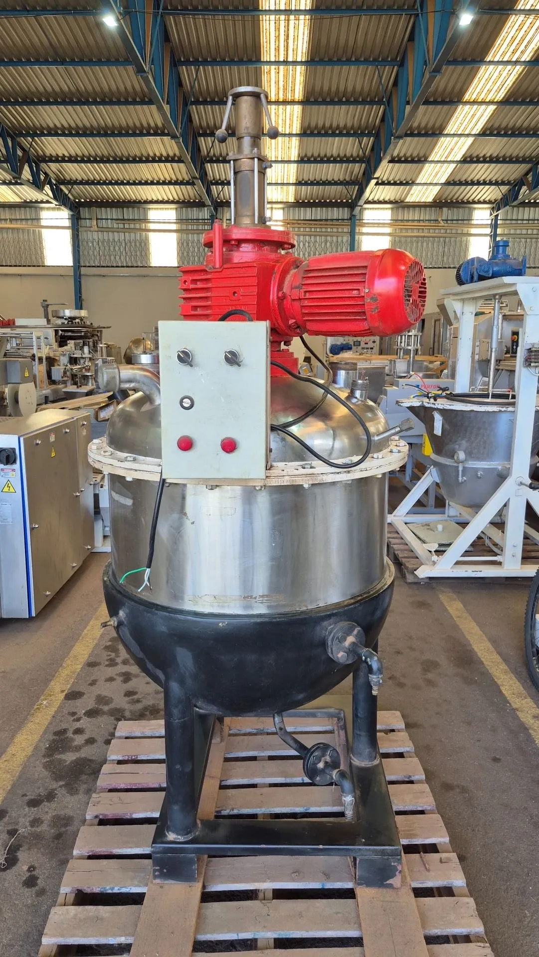 Reator de pressão em aço inox capacidade 200 litros. Equipamento com camisa externa em aço carbono (meia cana), com motor, redutor e eixo raspador. Para mistura e homogeneização de produtos alimentícios, cosmético, químicos entre outros. Motor Trifásico 0,5 CV, 3490/ 1750 RPM.