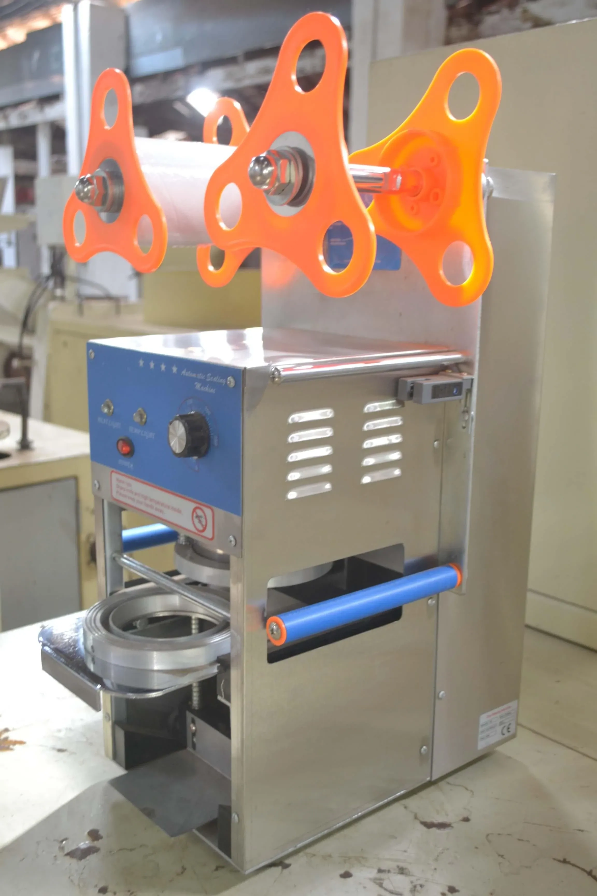 Diâmetro pote: 95 mm. Voltagem: 220 V Monofásico. Marca: Cup Sealer Machine (origem - China)