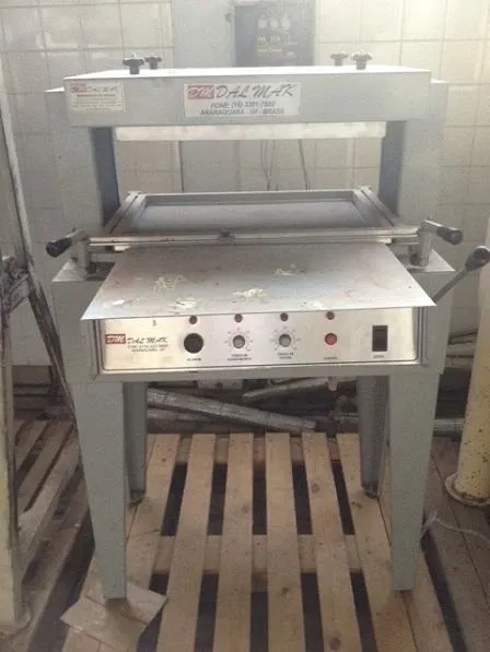 Seladora pneumática marca Dalmak, Modelo Skin. Nova, sem uso. Produto é plastificado diretamente na cartela de papelão impresso, ficando assim protegido e imobilizado. Podem ser utilizados filmes de P.V.C - flexível ou rígido - e também de polietileno.