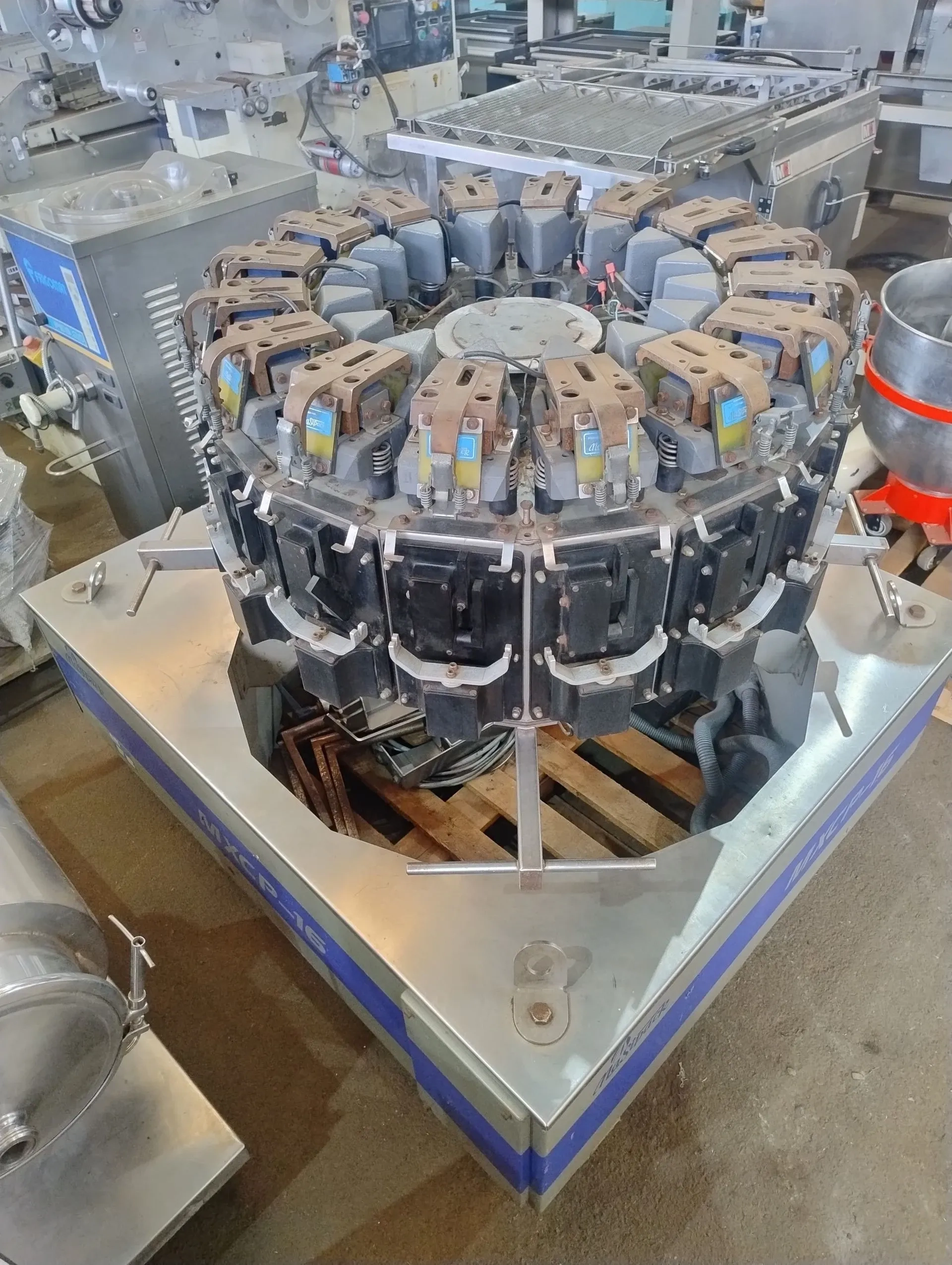 - Cabeçote: Cabeçote multi-cabeça com 16 balanças marca Masipack modelo MXCP-16. Capacidade máxima de pesagem 2,5 Kg. Para produtos sólidos e grãos. Dispõe de painel Allen-Bradley PanelView 550. Dimensões: Largura 1,3 m x Comprimento 1,55 m.