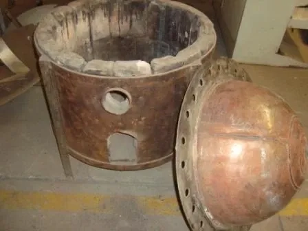 Tacho de cobre à gás para crocantes 100 l. Equipamento em aço carbono, com queimadores internos. Motor: 3 CV, 3480 rpm, trifásico. Dimensões: 600 mm diâmetro x 300 mm de profundidade. Marca: Incal