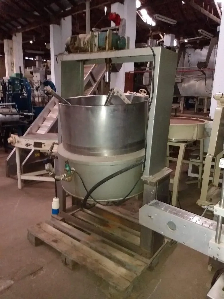 Tacho à vapor capacidade 300 litros. Equipamento basculante em aço inox com camisa externa e estrutura em aço carbono. Voltagem 220 V.