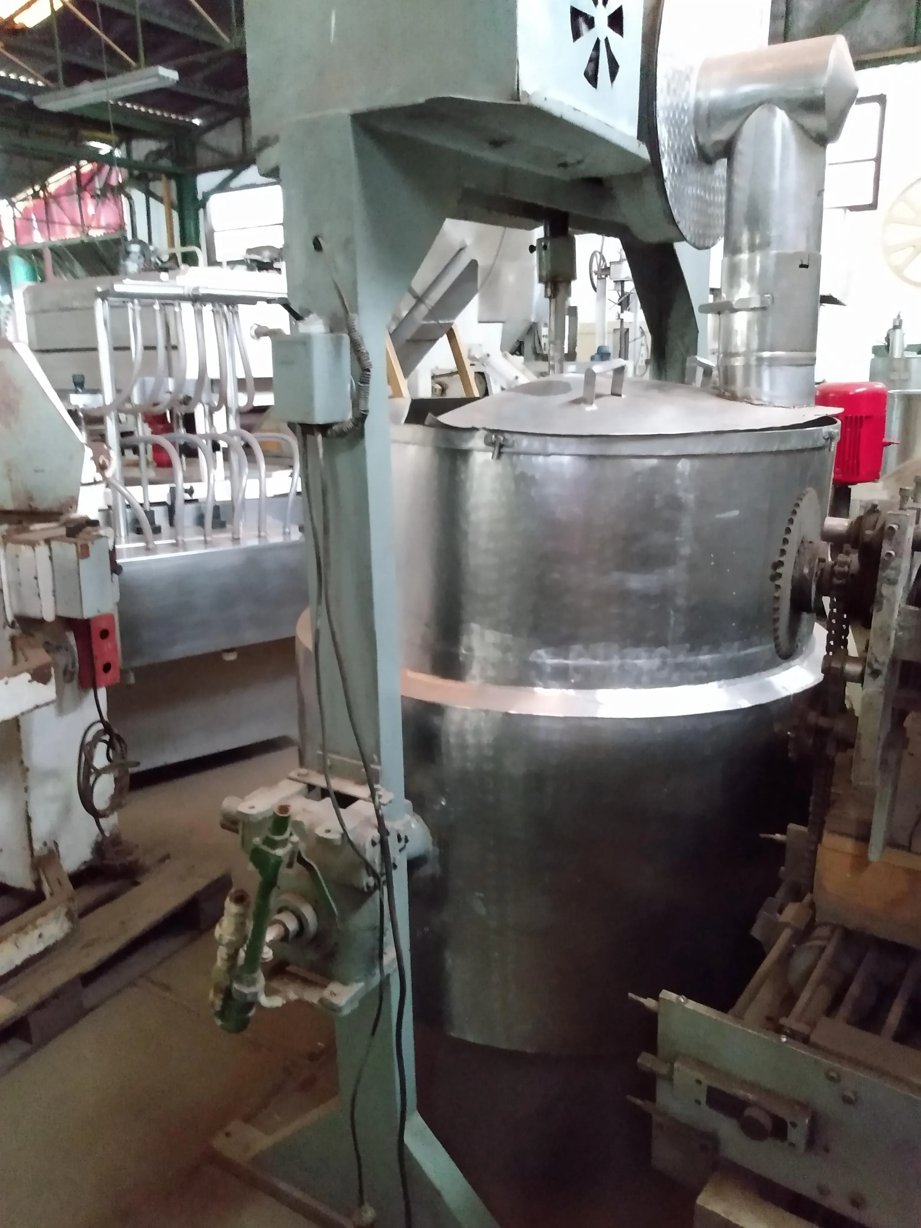 Tacho à vapor capacidade 600 litros. Equipamento em aço inox com camisa externa e estrutrua em aço carbono. Equipamento basculante.