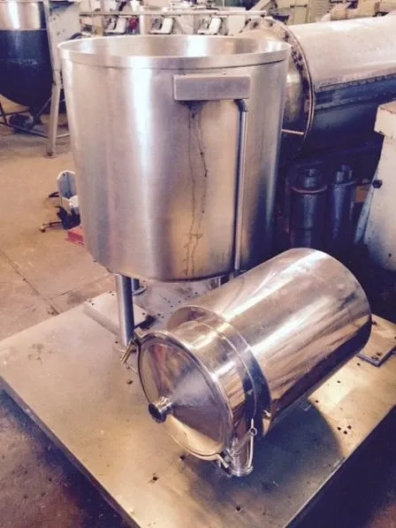 Tacho misturador. Equipamento com bomba de transferência e misturador em aço inox. Extração do produto via rosca.