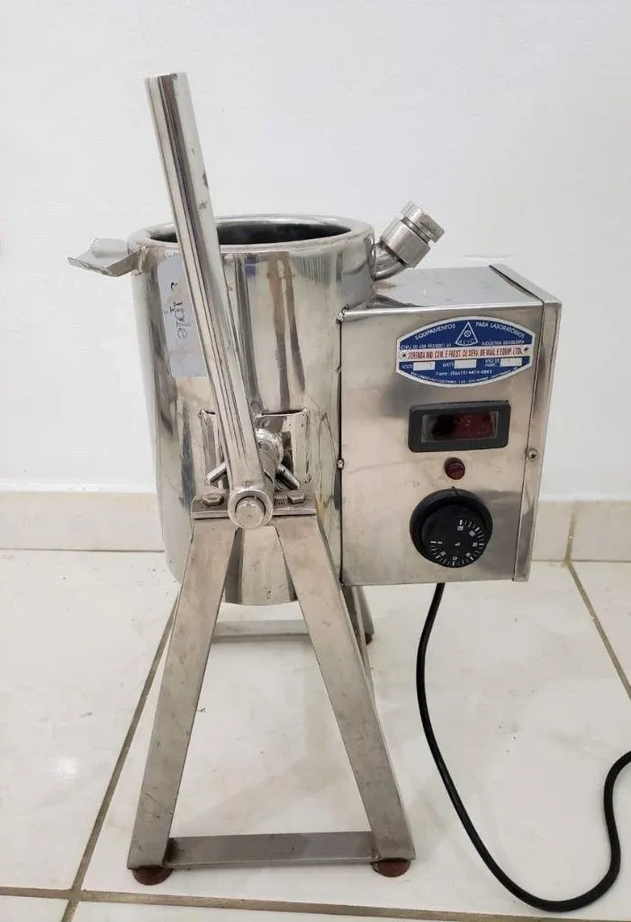 Tanque de aquecimento em aço inox polido marca Rorenox para laboratórios de controle de qualidade, desenvolvimento de produtos e testes. Com tombamento para tirar o produto.