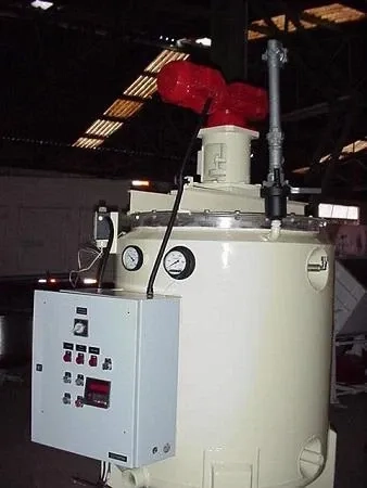 Tanque autônomo para chocolate com capacidade para 800 litros. Banho maria com duas resistências de 2000 watts, moto redutor de 4 hp, parte interna em aço inox inclusive os batedores.