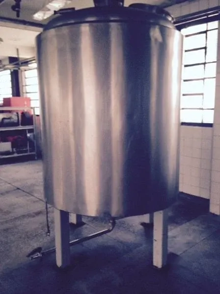 Tanque/tina de maturação encamisada de 2 mil litros, em aço inox (interno e externo) e pés em aço carbono.
