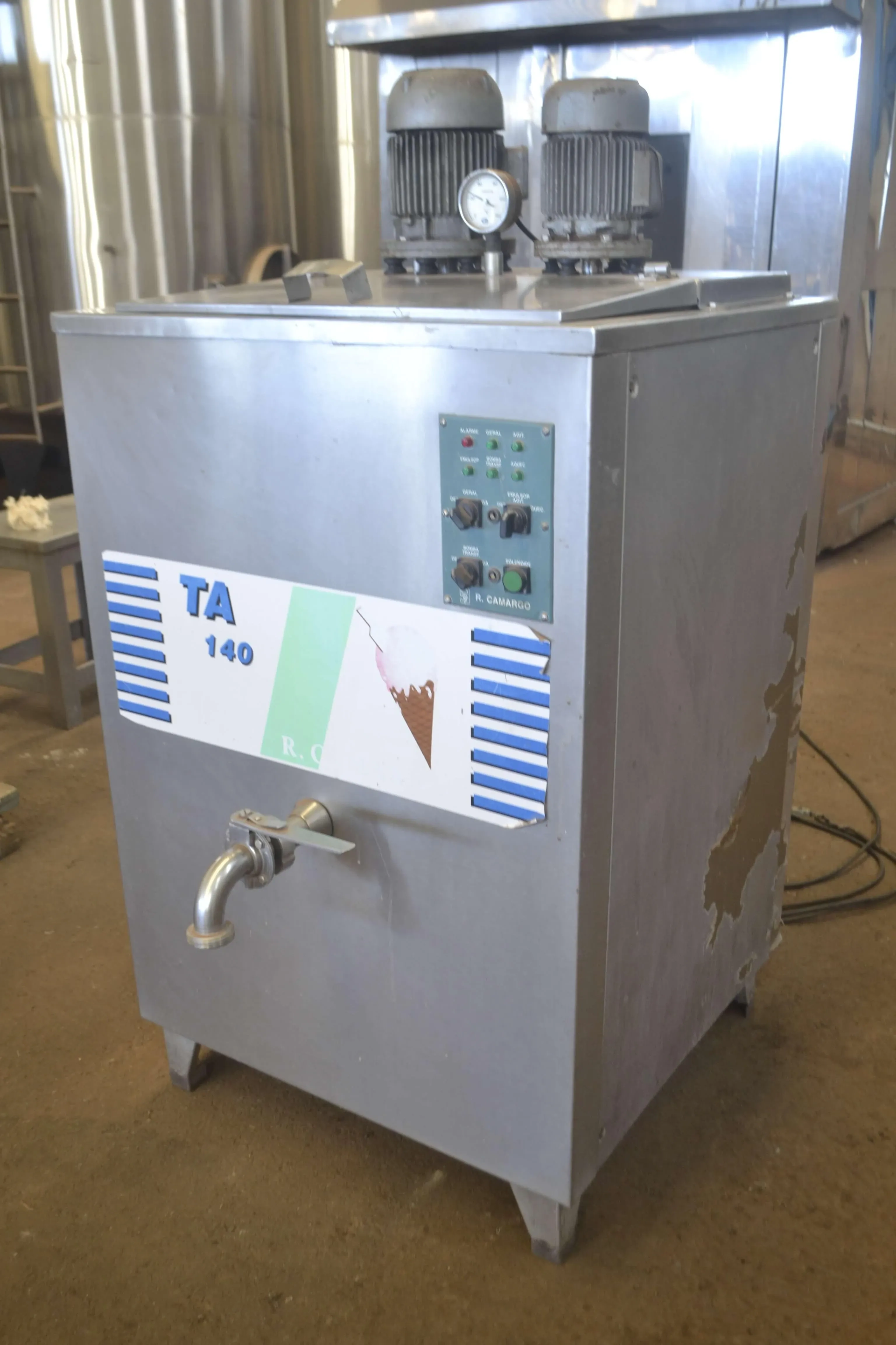 Tina de aquecimento para sorvetes capacidade 140 l marca R.Camargo modelo TA 140. Com emulsor. Fabricada em aço inox. Voltagem trifásica 220 V.