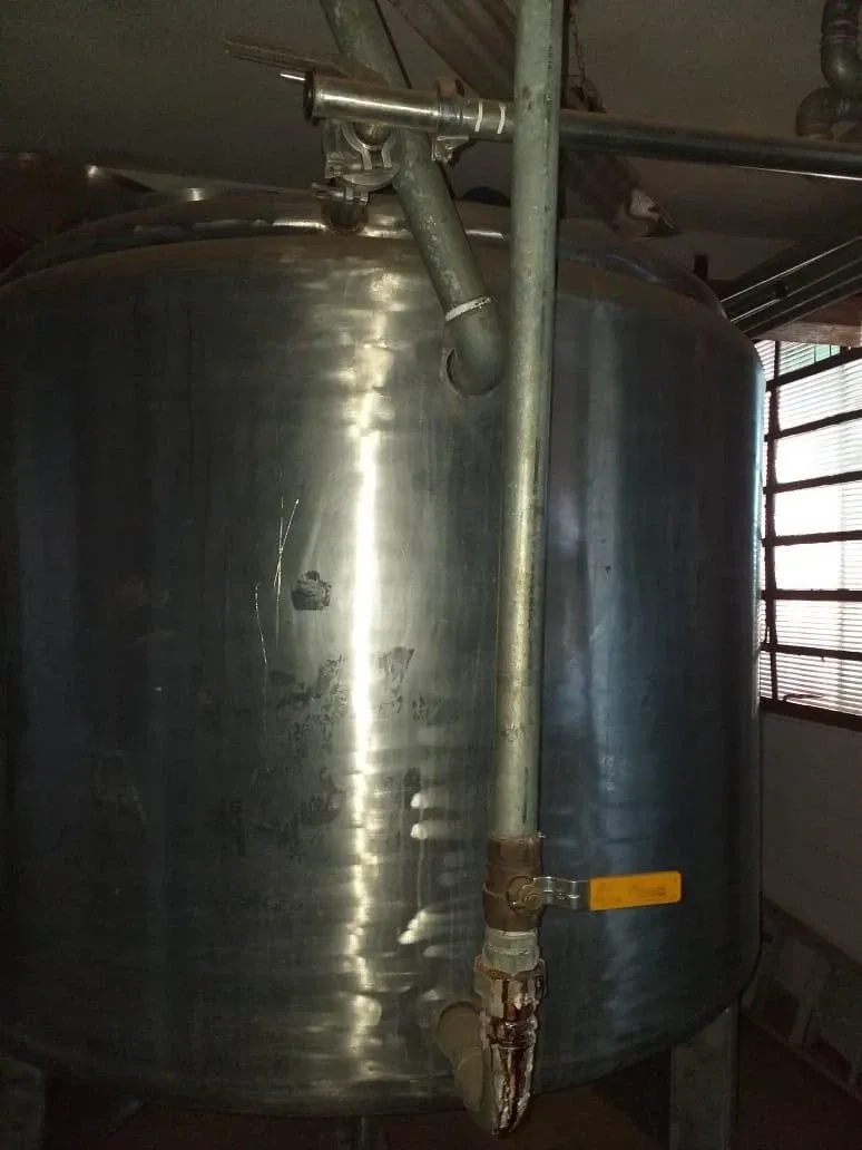 Tina de maturação 2 mil litros. Equipamento com camisa dupla e mexedor em aço inox total. Altura total: 2.40 m. Tina com pouco uso.