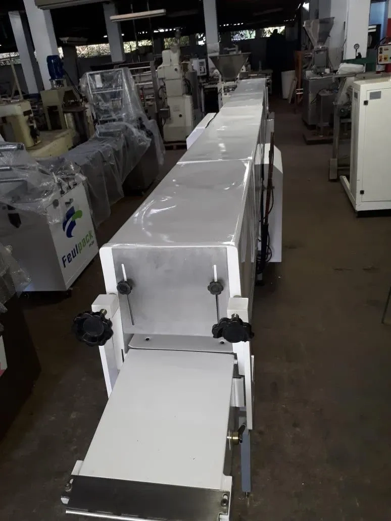 Túnel de resfriamento de chocolates 8 m. Túnel com capotas de isolamento em poliuretano expandido com fendas para distribuição uniforme do ar frio. Temperatura de trabalho entre 5º a 18º. Marca: JCMaq.